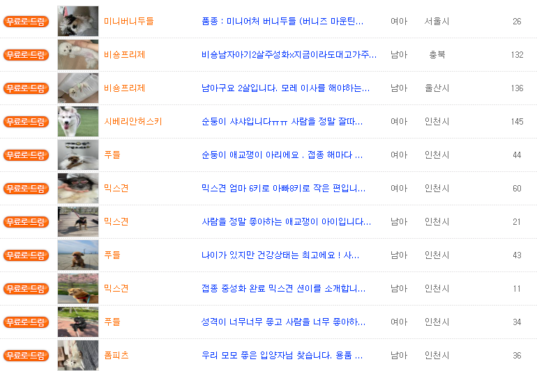 - 주세요닷컴(Zooseyo) – 전국 강아지 무료분양 게시판 운영. 개인, 보호소 등록 가능: