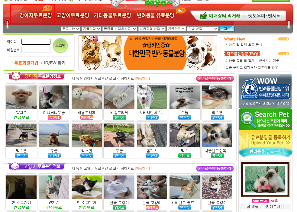 - 도그짱 – 분양/무료입양 검색 포털. 실시간 등록 정보 확인 가능