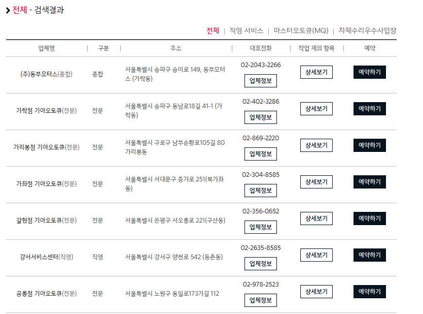Q. 기아 직영 서비스센터와 오토큐 차이가 무엇인가요?