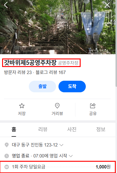 2.갓바위공영주차장 (대구 방면) ⭐⭐⭐⭐☆