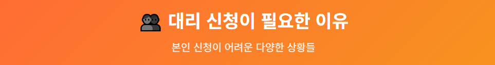 거동이 불편한 고령자, 해외 출장으로 부재중인 가족, 입원 중인 환자 등 다양한 사유로 대리 신청의 필요성이 높아지고 있습니다.