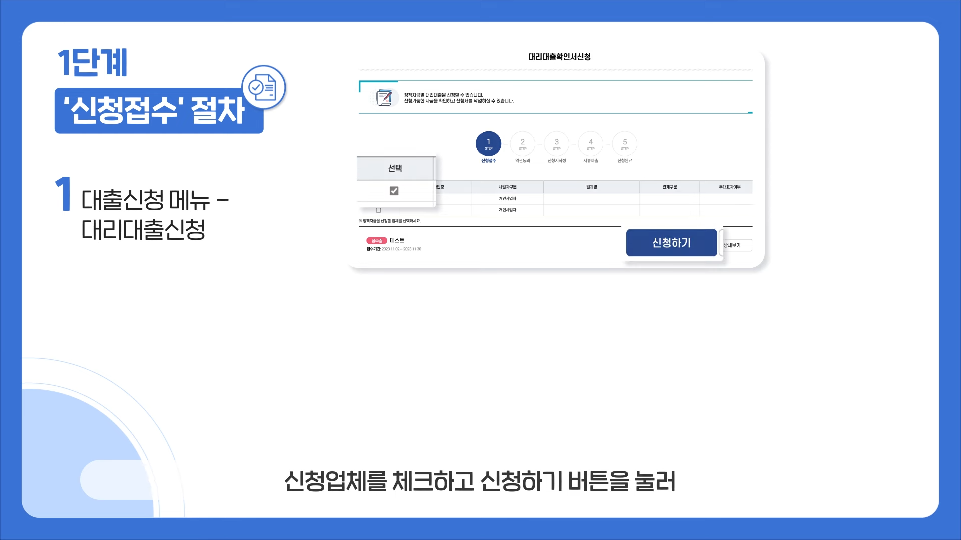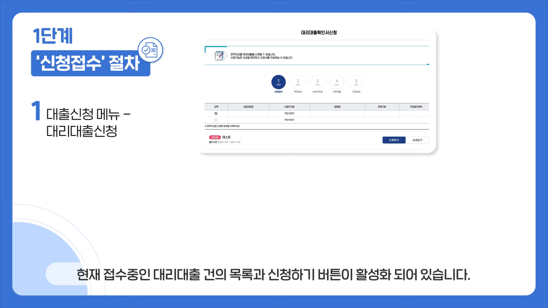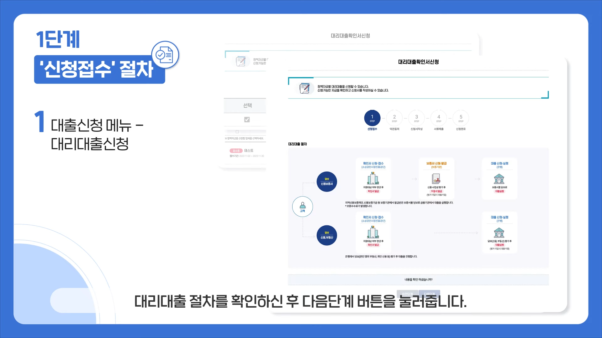 메인화면 → [대출신청] → [대리대출확인서신청] 클릭