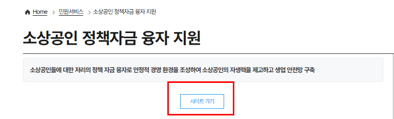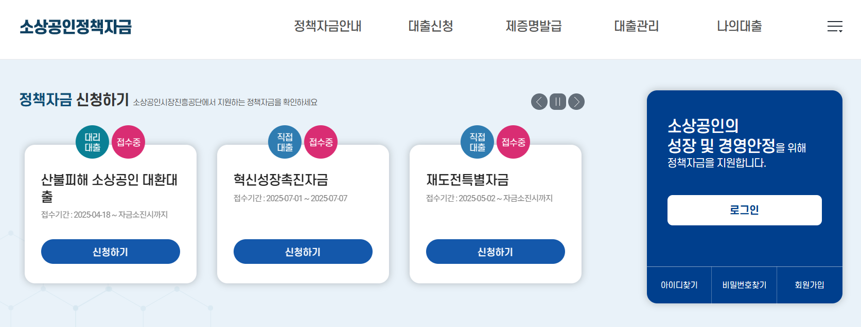 • 소상공인정책자금 홈페이지(https://ols.semas.or.kr) 접속