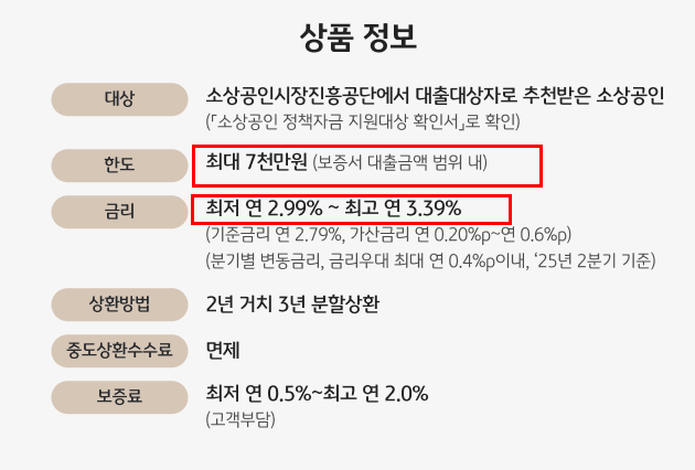 • 상환방법: 원금 70% 분할상환, 30% 만기일시상환