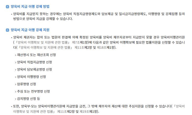 • 집행력 있는 정본 보유 (판결문, 조정조서, 양육비부담조서 등)