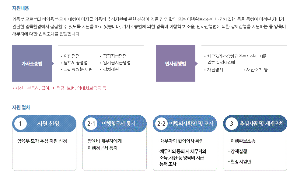 개인적으로 법적 절차를 진행하기 어려운 경우, 양육비이행관리원의 전문 지원을 받을 수 있습니다.