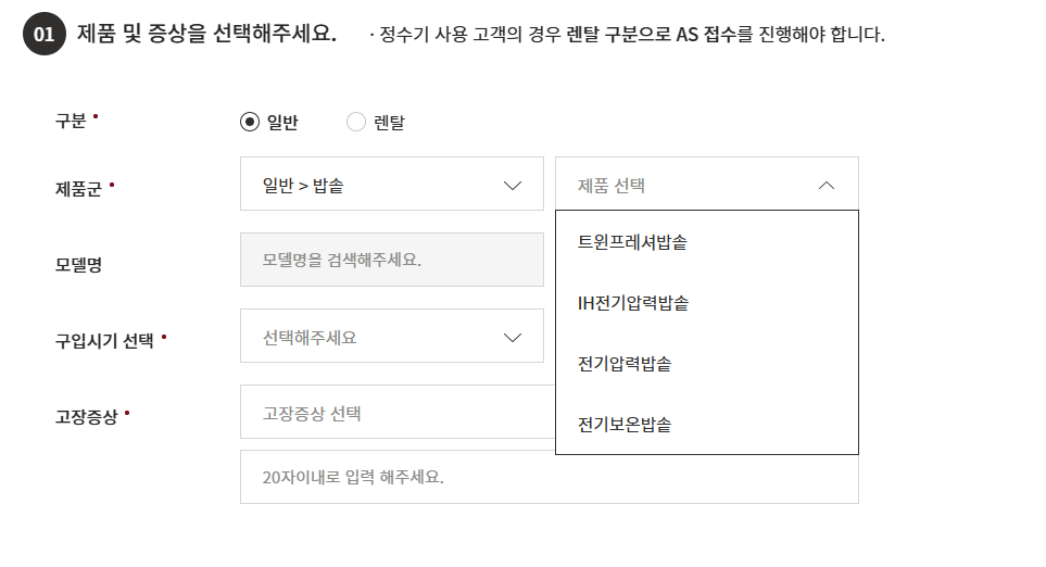 • 렌탈료 미납 고객은 AS 접수가 불가능합니다