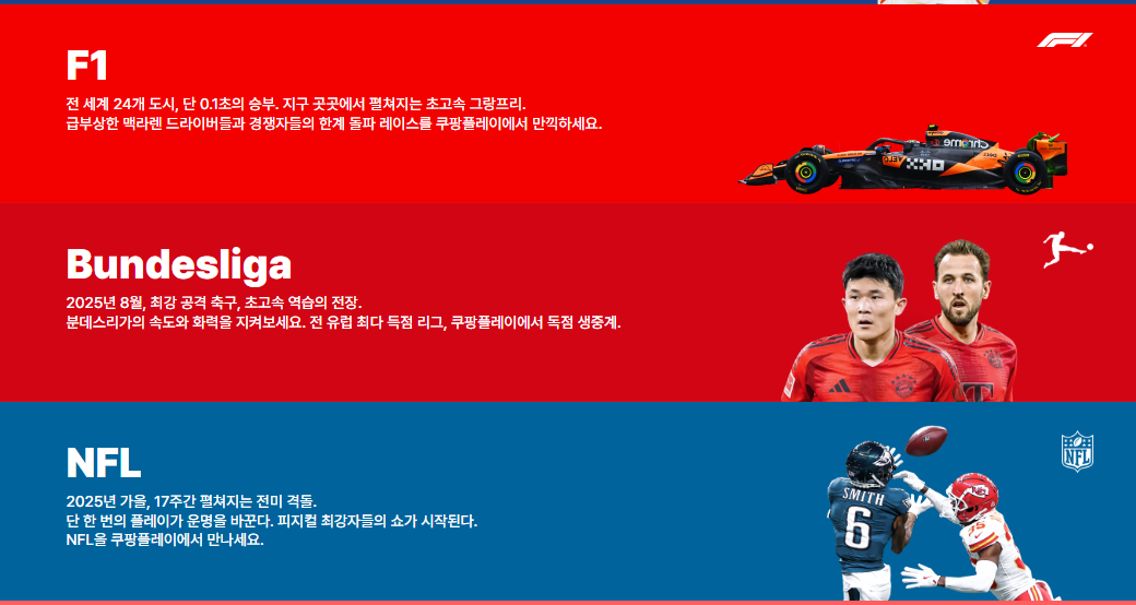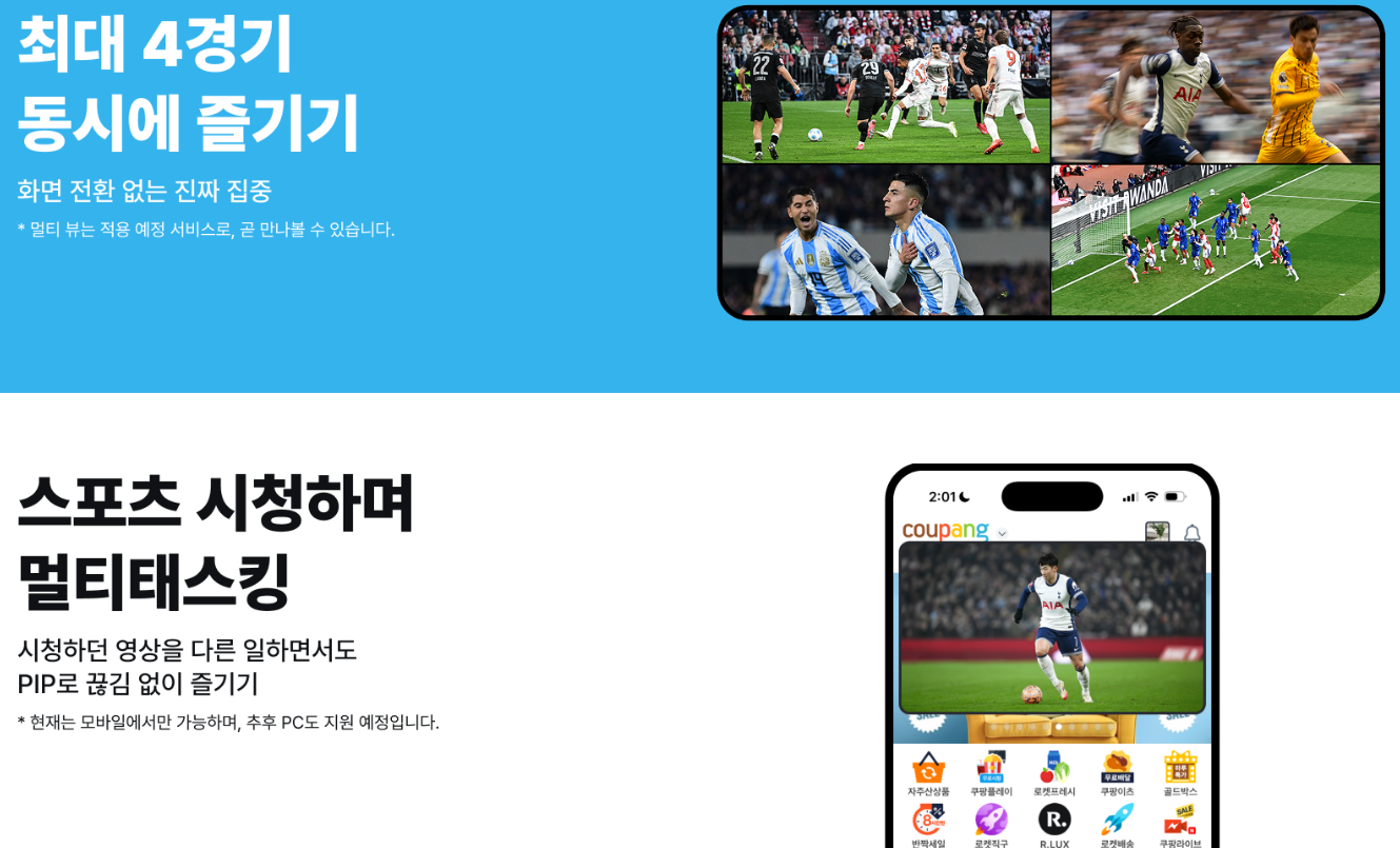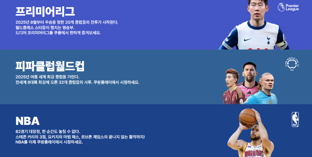 축구 부문에서는 손흥민의 프리미어리그, 김민재의 분데스리가, 이강인의 리그1을 모두 실시간으로 시청할 수 있습니다. 여기에 라리가, 세리에A 등 유럽 주요 리그와 FIFA 클럽월드컵까지 포함되어 있어 축구 팬들에게는 상당한 매력으로 다가올 것 같습니다.