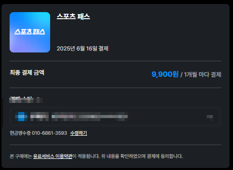 • 총 비용: 월 17,790원 (와우 멤버십 7890원 + 스포츠패스 9900원)