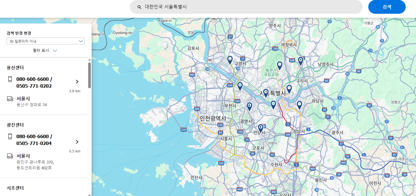 - 서비스센터 위치 찾기 기능으로 가까운 센터 및 운영시간 확인