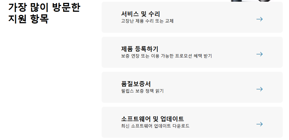 - 카카오톡 상담: '필립스 고객센터' 채널 추가 후 실시간 채팅 문의(사진 첨부 가능)