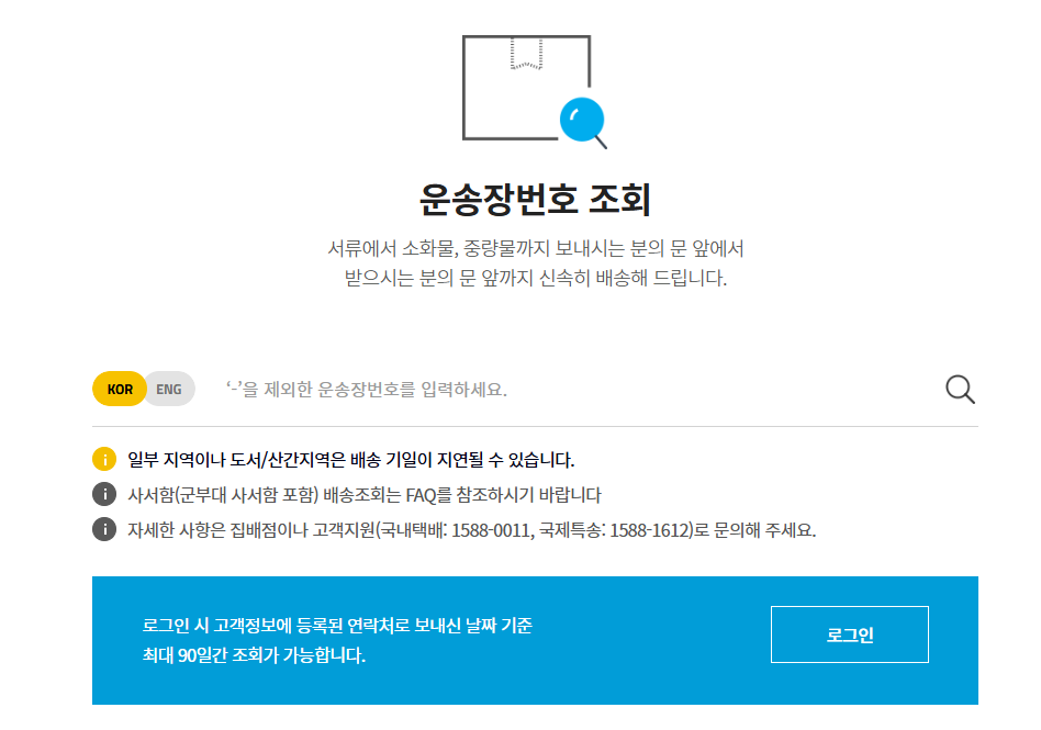 - 로그인 없이도 운송장번호만 입력하면 간편 조회