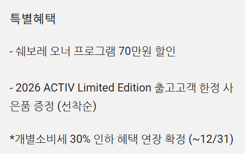 이번에는 풀옵션 구성과 함께 다양한 할인 혜택도 제공되며 실구매가에 큰 차이를 만들고 있는데요. 이번 포스팅에서는 2026 쉐보레 트레일블레이저의 가격표, 트림별 구성, 할인 혜택을 모두 정리해드립니다.