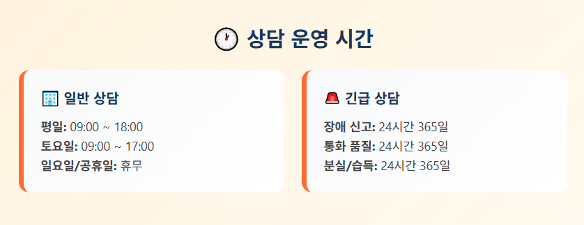- 장애 신고: 24시간 언제든 가능